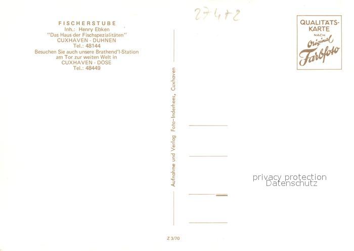73569992 Cuxhaven Duhnen Nordseebad Fischerstube Speisesaal postalisch nicht gelaufen Erhaltung siehe scans [WerneD78] KatCode: 11110003352011