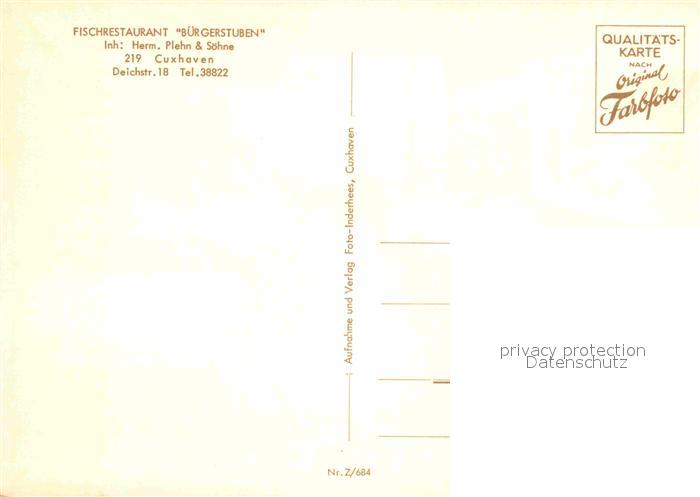 72877782 Cuxhaven Duhnen Nordseebad Fischrestaurant Buergerstuben postalisch nicht gelaufen Erhaltung siehe scans [AndreD76] KatCode: 11110003352011
