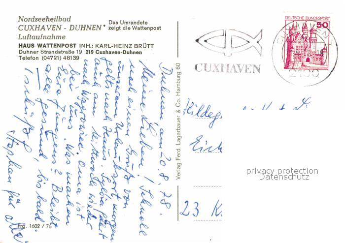 72773853 alte Postkarte Cuxhaven Duhnen Nordseebad Fliegeraufnahme postalisch gelaufen Erhaltung siehe scans [AndreD76] KatCode: 11110003352011