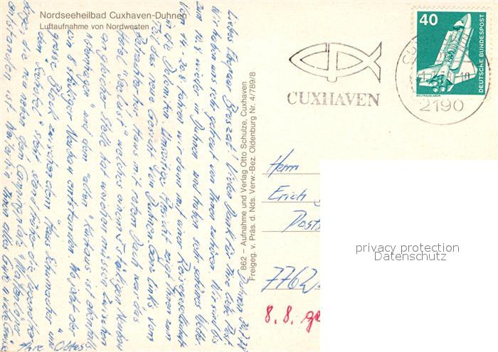 72969838 alte Postkarte Cuxhaven Duhnen Nordseebad Fliegeraufnahme mit Strand postalisch gelaufen Erhaltung siehe scans [LiesaD40] KatCode: 11110003352011