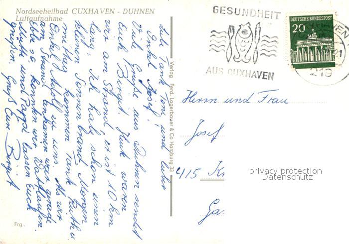 72935304 alte Postkarte Cuxhaven Duhnen Nordseebad Fliegeraufnahme mit Strand postalisch gelaufen Erhaltung siehe scans [LiesaD40] KatCode: 11110003352011