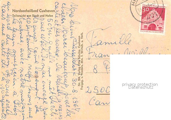 72725685 alte Postkarte Cuxhaven Duhnen Nordseebad Fliegeraufnahme Stadt und Hafen postalisch gelaufen Erhaltung siehe scans [LiesaD40] KatCode: 11110003352011