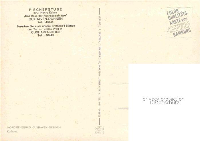72876940 Cuxhaven Duhnen Nordseebad Kurhaus postalisch nicht gelaufen Erhaltung siehe scans [AndreD76] KatCode: 11110003352011