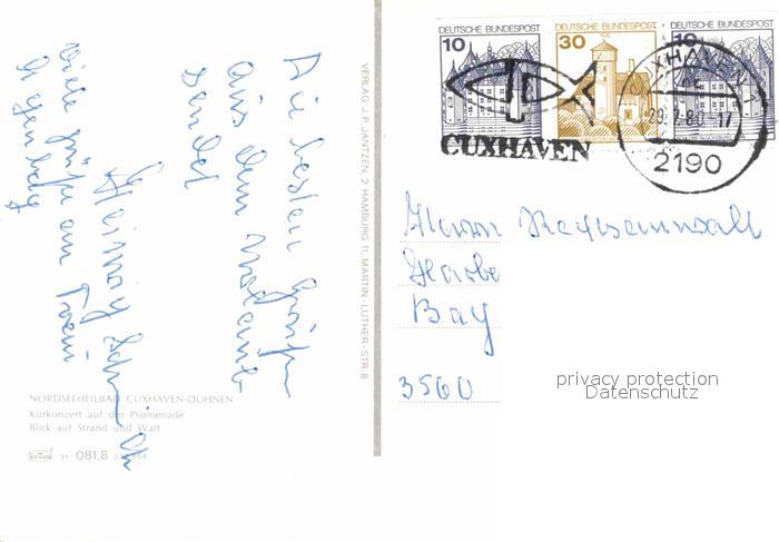 72876928 alte Postkarte Cuxhaven Duhnen Nordseebad Kurkonzert auf der Promenade postalisch gelaufen Erhaltung siehe scans [AndreD76] KatCode: 11110003352011