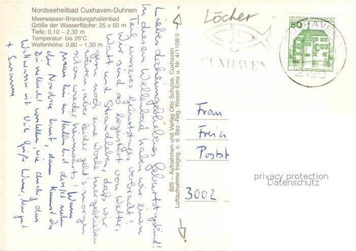 72718336 alte Postkarte Cuxhaven Duhnen Nordseebad Meerwasser Brandungshallenbad Strand postalisch gelaufen Erhaltung siehe scans [LiesaD40] KatCode: 11110003352011