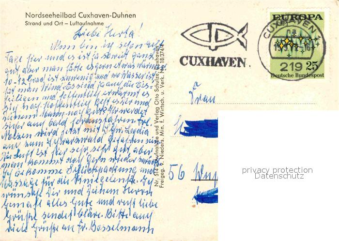 72680726 alte Postkarte Cuxhaven Duhnen Nordseebad Strand und Ort Fliegeraufnahme postalisch gelaufen Erhaltung siehe scans [WerneD78] KatCode: 11110003352011