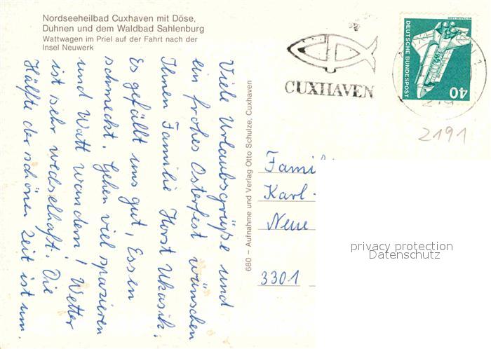 72897497 alte Postkarte Cuxhaven Duhnen Nordseebad Wattwagen im Priel postalisch gelaufen Erhaltung siehe scans [WerneD78] KatCode: 11110003352011