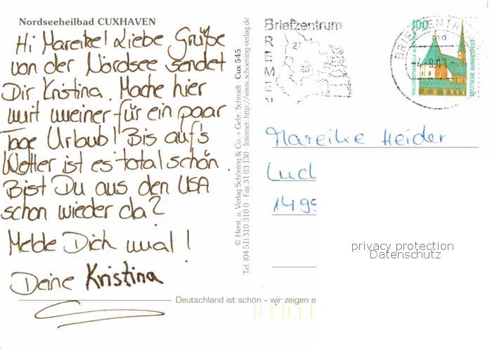 72739792 alte Postkarte Cuxhaven Nordseebad Alte Liebe Finkenmoor Strand Kurpark Kugelbake Fischereihafen postalisch gelaufen Erhaltung siehe scans [LiesaD40] KatCode: 11110003352011