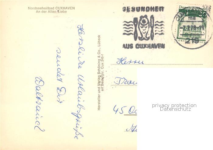 73293702 alte Postkarte Cuxhaven Nordseebad An der Alten Liebe Faehre postalisch gelaufen Erhaltung siehe scans [FriedD77] KatCode: 11110003352011