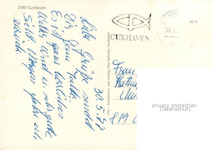 73294273 alte Postkarte Cuxhaven Nordseebad Deichstrasse Leuchtturm Kugelbake Alte Liebe Faehre Kurpark Doese Strand in Duhnen postalisch gelaufen Erhaltung siehe scans [FriedD77] KatCode: 11110003352011