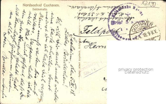 42161610 alte Postkarte Cuxhaven Nordseebad Deichstrasse postalisch gelaufen Feldpost Erhaltung siehe scans KatCode: 11110003352011