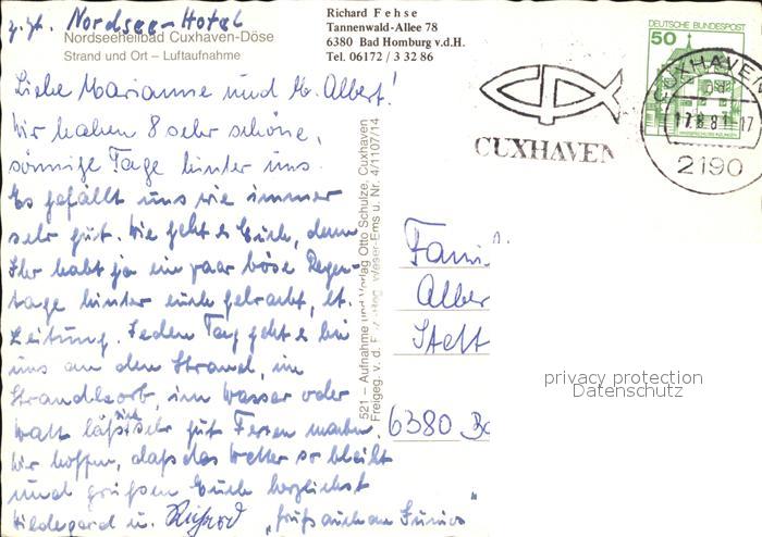 72429546 alte Postkarte Cuxhaven Nordseebad Doese Strand Ort Luftaufnahme postalisch gelaufen Erhaltung siehe scans KatCode: 11110003352011