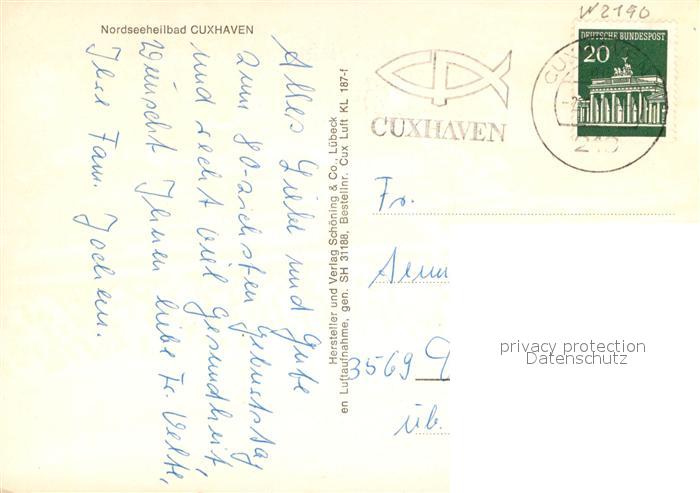 72962710 alte Postkarte Cuxhaven Nordseebad Fliegeraufnahme postalisch gelaufen Erhaltung siehe scans [NatalD47] KatCode: 11110003352011