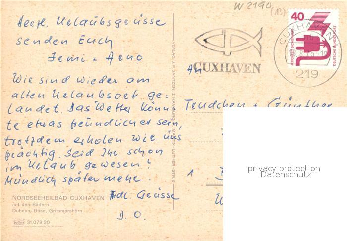 72935321 alte Postkarte Cuxhaven Nordseebad Fliegeraufnahme postalisch gelaufen Erhaltung siehe scans [LiesaD40] KatCode: 11110003352011