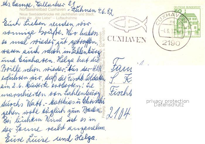 72946497 alte Postkarte Cuxhaven Nordseebad Fliegeraufnahme Hafen postalisch gelaufen Erhaltung siehe scans [LiesaD40] KatCode: 11110003352011