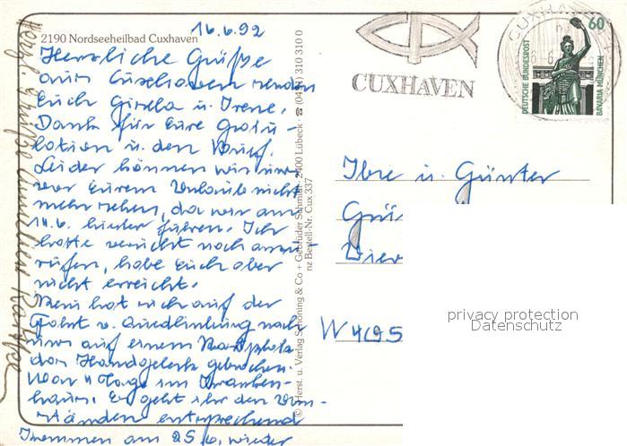 73160361 alte Postkarte Cuxhaven Nordseebad Fliegeraufnahme Hafen Seenotkreuzer postalisch gelaufen Erhaltung siehe scans [KathaD81] KatCode: 11110003352011