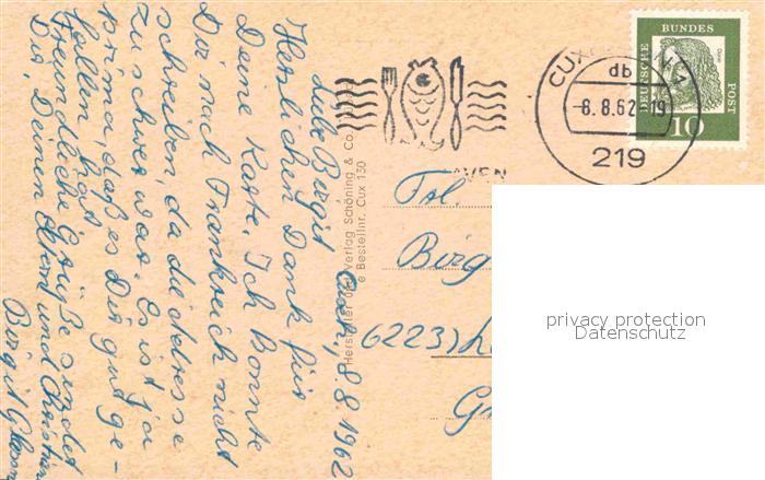 72759490 alte Postkarte Cuxhaven Nordseebad Fliegeraufnahme Hafen Seezeichen postalisch gelaufen Erhaltung siehe scans [LiesaD40] KatCode: 11110003352011