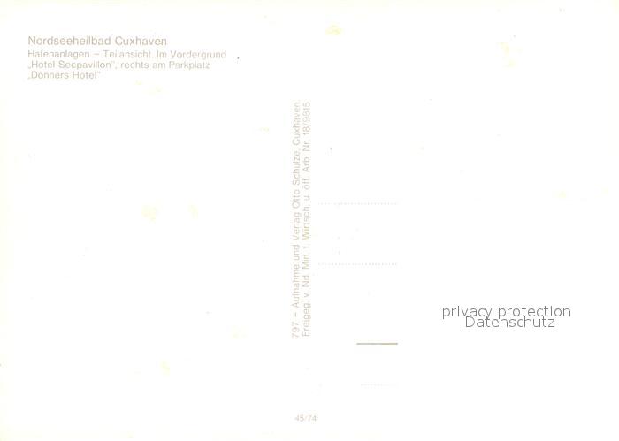 72993847 Cuxhaven Nordseebad Fliegeraufnahme Hafenanlage Hotel Seepavilon und Donners Hotel postalisch nicht gelaufen Erhaltung siehe scans [AndreD76] KatCode: 11110003352011
