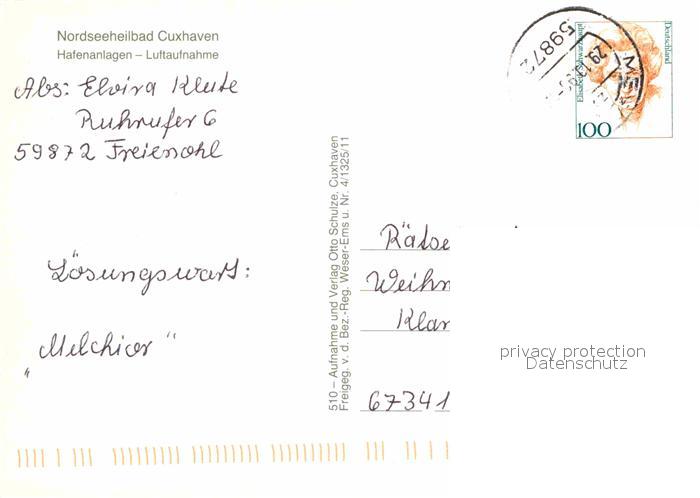 72756111 alte Postkarte Cuxhaven Nordseebad Fliegeraufnahme Hafenanlagen postalisch gelaufen Erhaltung siehe scans [NatalD47] KatCode: 11110003352011