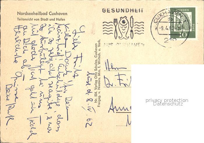 72447778 alte Postkarte Cuxhaven Nordseebad Fliegeraufnahme mit Hafen postalisch gelaufen Erhaltung siehe scans KatCode: 11110003352011