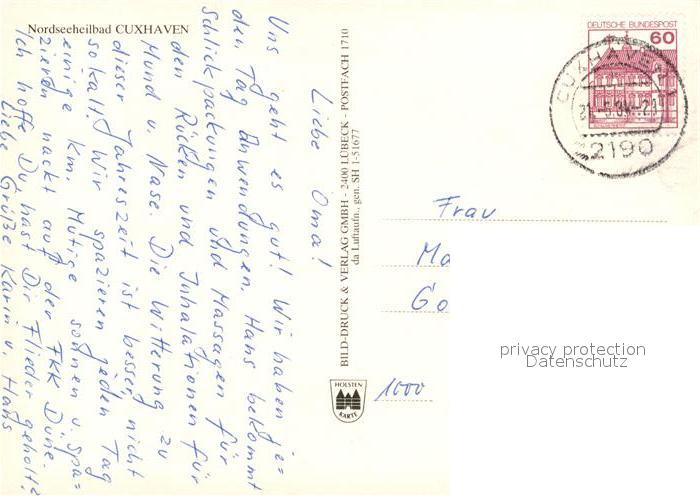 73544397 alte Postkarte Cuxhaven Nordseebad Fliegeraufnahme mit Strand postalisch gelaufen Erhaltung siehe scans [LiesaD40] KatCode: 11110003352011