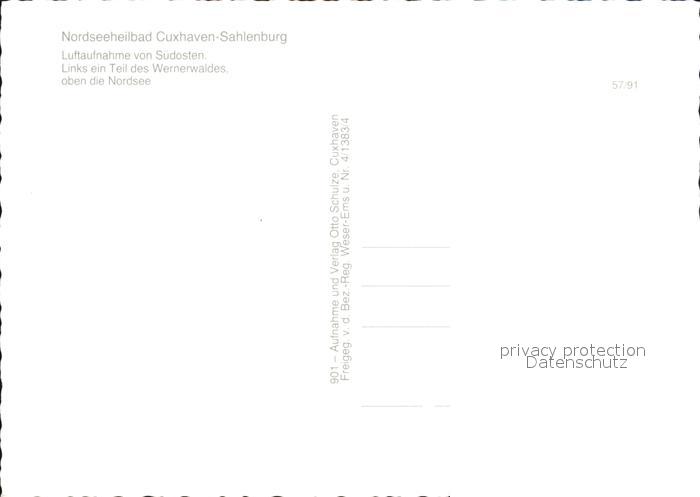 72585449 Cuxhaven Nordseebad Fliegeraufnahme mit Wernerwald postalisch nicht gelaufen Erhaltung siehe scans [AndreD76] KatCode: 11110003352011