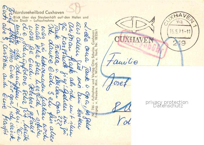 72667355 alte Postkarte Cuxhaven Nordseebad Fliegeraufnahme Steubenhoeft Hafen postalisch gelaufen Erhaltung siehe scans [AndreD76] KatCode: 11110003352011