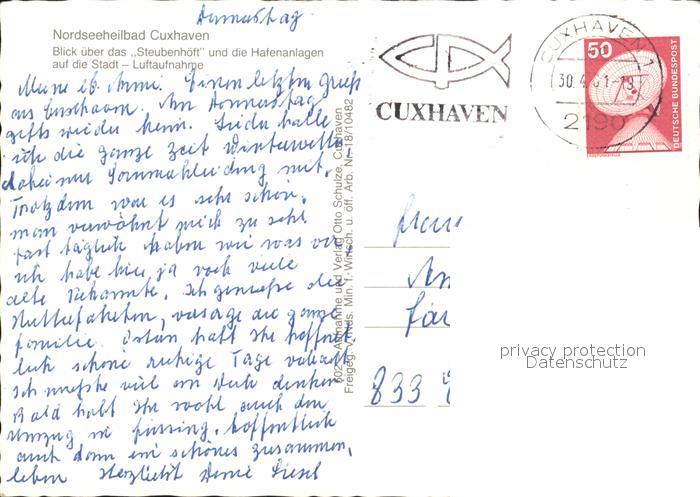 72398182 alte Postkarte Cuxhaven Nordseebad Fliegeraufnahme Steubenhoeft postalisch gelaufen Erhaltung siehe scans KatCode: 11110003352011