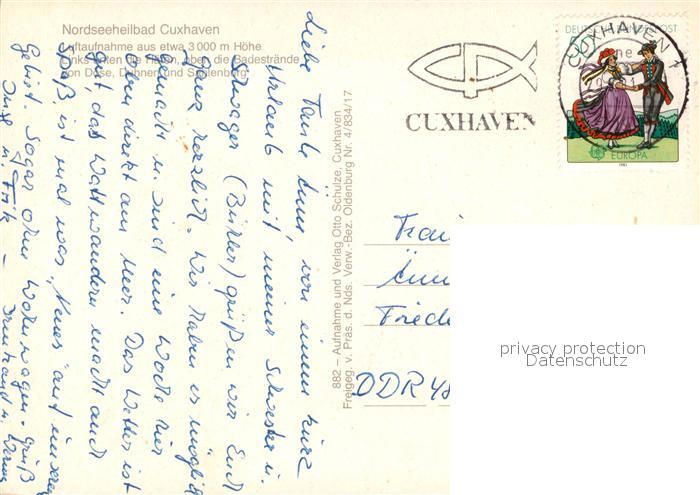 73166768 alte Postkarte Cuxhaven Nordseebad Fliegeraufnahme Straende Hafen postalisch gelaufen Erhaltung siehe scans [KathaD81] KatCode: 11110003352011