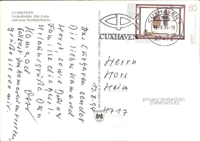 72113887 alte Postkarte Cuxhaven Nordseebad Gedenkstaette Alte Liebe und neue Seebaederbruecke postalisch gelaufen Erhaltung siehe scans KatCode: 11110003352011