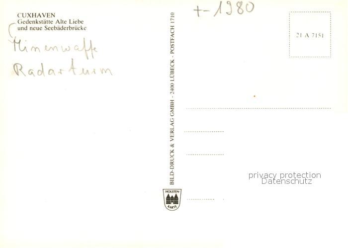 73063194 Cuxhaven Nordseebad Gedenkstaette Alte Liebe und neue Seebaederbruecke postalisch nicht gelaufen Erhaltung siehe scans [FriedD77] KatCode: 11110003352011