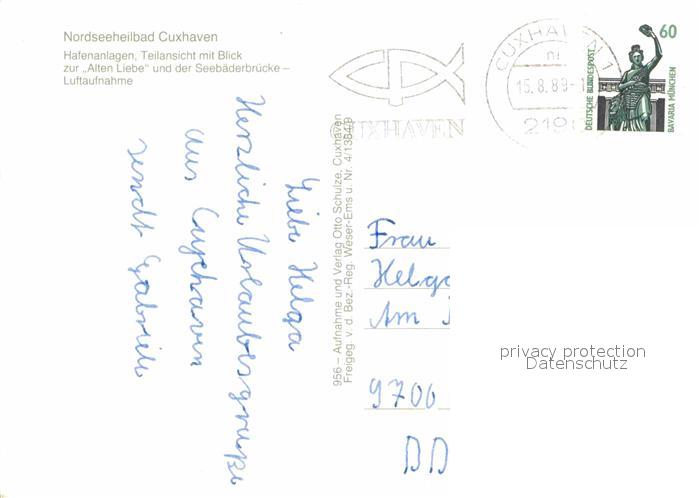 72651998 alte Postkarte Cuxhaven Nordseebad Hafenanlagen Alte Liebe Seebaederbruecke Fliegeraufnahme postalisch gelaufen Erhaltung siehe scans [FriedD77] KatCode: 11110003352011