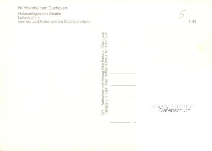 73171289 Cuxhaven Nordseebad Hafenanlagen Jachthafen Seebaederbruecke Fliegeraufnahme postalisch nicht gelaufen Erhaltung siehe scans [FriedD77] KatCode: 11110003352011
