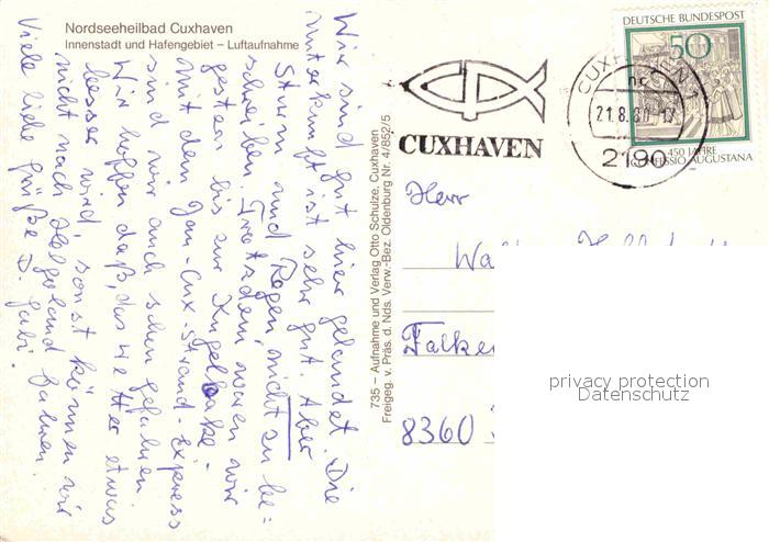 72668428 alte Postkarte Cuxhaven Nordseebad Hafengebiet Fliegeraufnahme postalisch gelaufen Erhaltung siehe scans [AndreD76] KatCode: 11110003352011