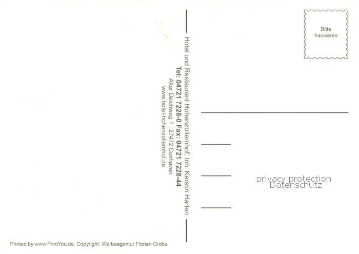 73726411 Cuxhaven Nordseebad Hotel Restaurant Hohenzollernhof postalisch nicht gelaufen Erhaltung siehe scans [WerneD78] KatCode: 11110003352011