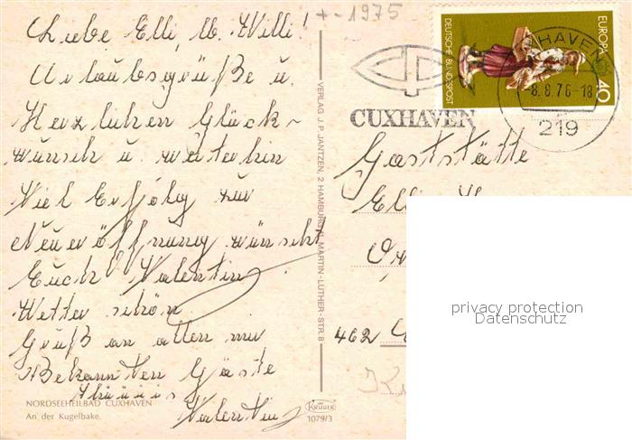 72899183 alte Postkarte Cuxhaven Nordseebad Kugelbake postalisch gelaufen Erhaltung siehe scans [LiesaD40] KatCode: 11110003352011