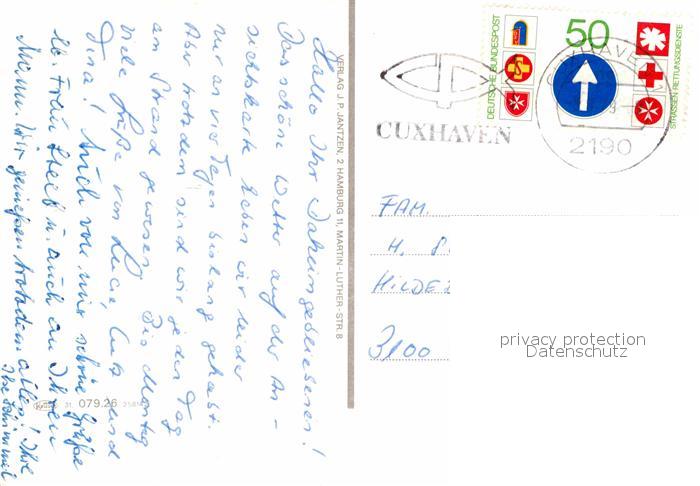 72712953 alte Postkarte Cuxhaven Nordseebad Kugelbake D?hnen Elbe-F?hre Hafen D?se Sahlenburg postalisch gelaufen Erhaltung siehe scans [LiesaD40] KatCode: 11110003352011