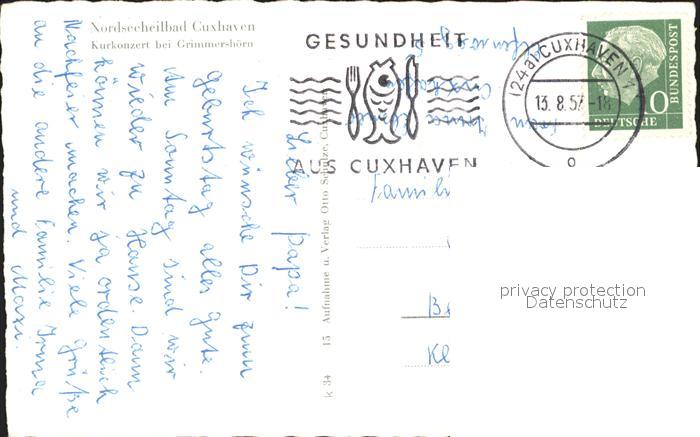 71903160 alte Postkarte Cuxhaven Nordseebad Kurkonzert Grimmershoern postalisch gelaufen Erhaltung siehe scans KatCode: 11110003352011