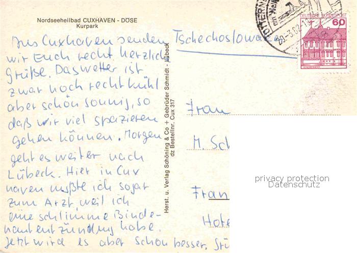 72838639 alte Postkarte Cuxhaven Nordseebad Kurpark postalisch gelaufen Erhaltung siehe scans [AndreD76] KatCode: 11110003352011