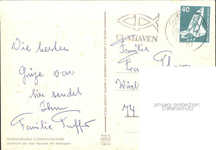 71947000 alte Postkarte Cuxhaven Nordseebad Leuchtturm Insel Neuwerk Wattwagen postalisch gelaufen Erhaltung siehe scans KatCode: 11110003352011