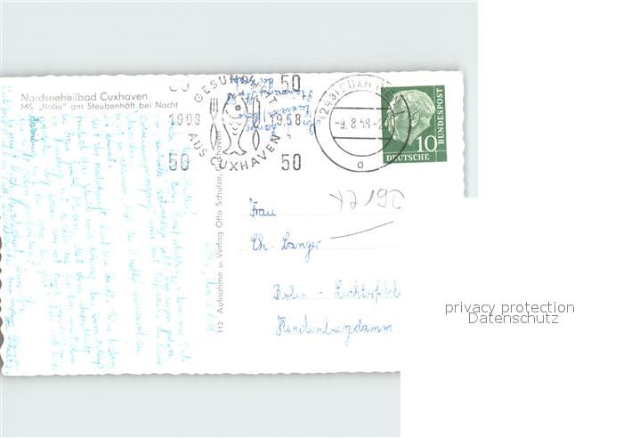 32360220 alte Postkarte Cuxhaven Nordseebad MS Italia am Steubenhoeft bei Nacht postalisch gelaufen Erhaltung siehe scans KatCode: 11110003352011