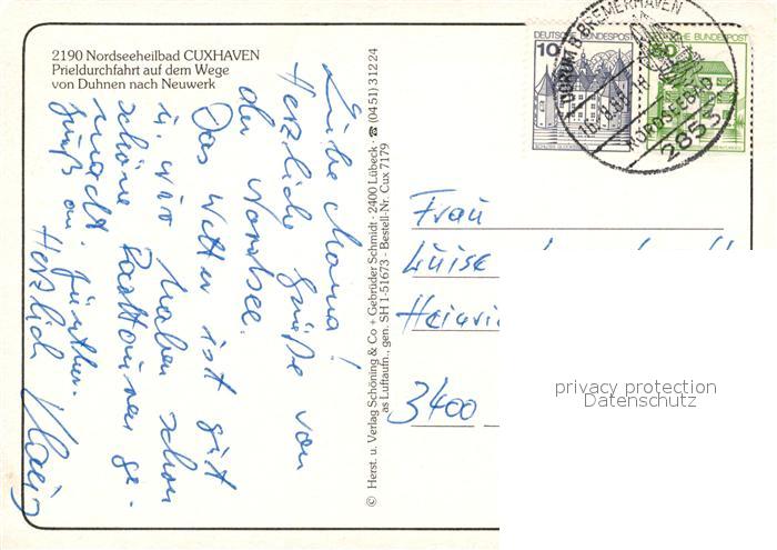 73160115 alte Postkarte Cuxhaven Nordseebad Prieldurchfahrt von Duhnen nach Neuwerk postalisch gelaufen Erhaltung siehe scans [KathaD81] KatCode: 11110003352011