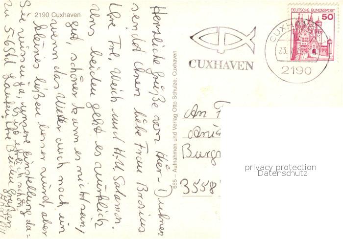 73147222 alte Postkarte Cuxhaven Nordseebad Seglerhafen Seebaederbruecke Kutterhafen Kugelbake Strandhaus Dose Kurpark Promenade Duhnen Wattwagenfahrt Finkenmoor postalisch gelaufen Erhaltung siehe scans [FriedD77] KatCode: 11110003352011