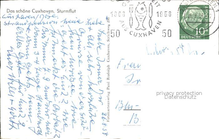 72121976 alte Postkarte Cuxhaven Nordseebad Sturmflut postalisch gelaufen Erhaltung siehe scans KatCode: 11110003352011