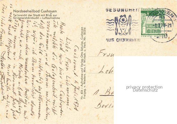 74091731 alte Postkarte CUXHAVEN Nordseebad Teilansicht der Stadt Grimmershoernbucht postalisch gelaufen Erhaltung siehe scans [IrynaD87] KatCode: 11110003352011