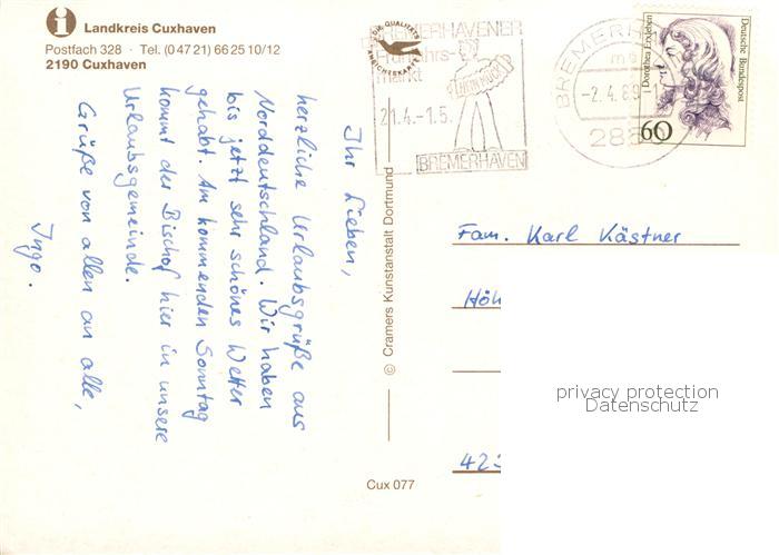 73836862 alte Postkarte Cuxhaven Nordseebad uebersichtskarte postalisch gelaufen Erhaltung siehe scans [FriedD77] KatCode: 11110003352011