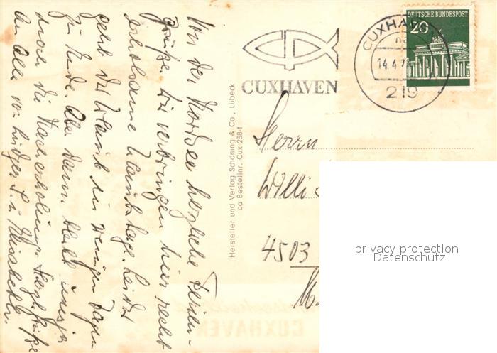 73160352 alte Postkarte Cuxhaven Nordseebad Wattfahrt Hafen Fischkutter postalisch gelaufen Erhaltung siehe scans [KathaD81] KatCode: 11110003352011