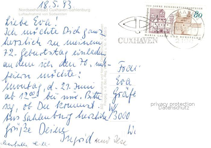 73101107 alte Postkarte Cuxhaven Sahlenburg Nordseebad Fliegeraufnahme postalisch gelaufen Erhaltung siehe scans [WerneD78] KatCode: 11110003352011