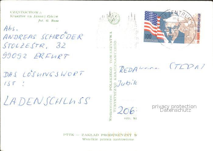 old postcard Czestochowa Schlesien Klasztor Jasnej Gorze postalisch gelaufen Erhaltung siehe scans