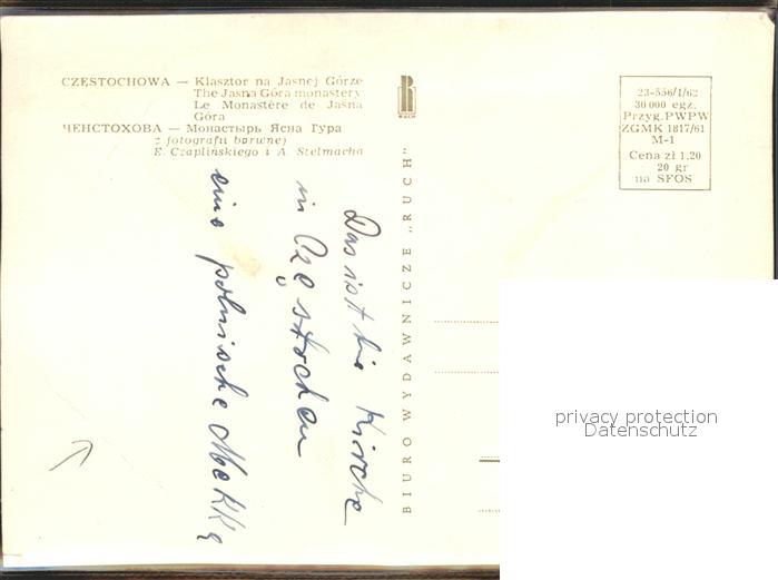 Czestochowa Schlesien Klasztor na Jasnej Gorze postalisch nicht gelaufen Erhaltung siehe scans